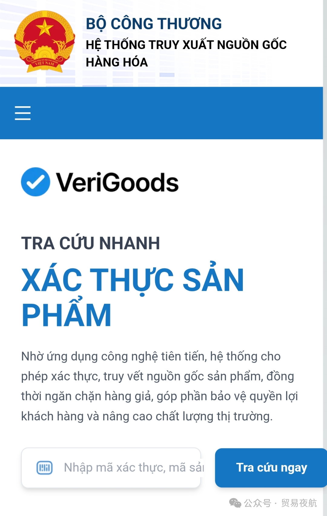 产品溯源系统于2025年12月23日在www.verigoods.vn已正式上线。企业可在此平台注册产品信息、获取验证代码,并获得技术支持。